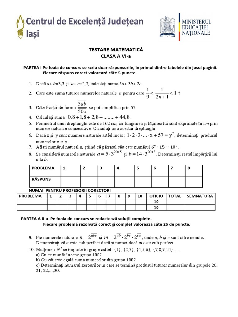 Mate Info Ro 3201 Centrul Judetean De Excelenta Iasi Testare Clasa A Vi A Pdf