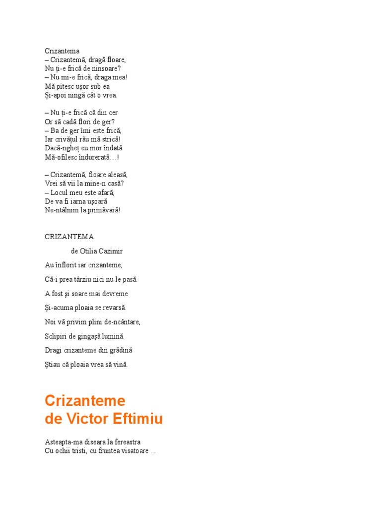 Crizantema Poezie Populară Anideșcoală Ro