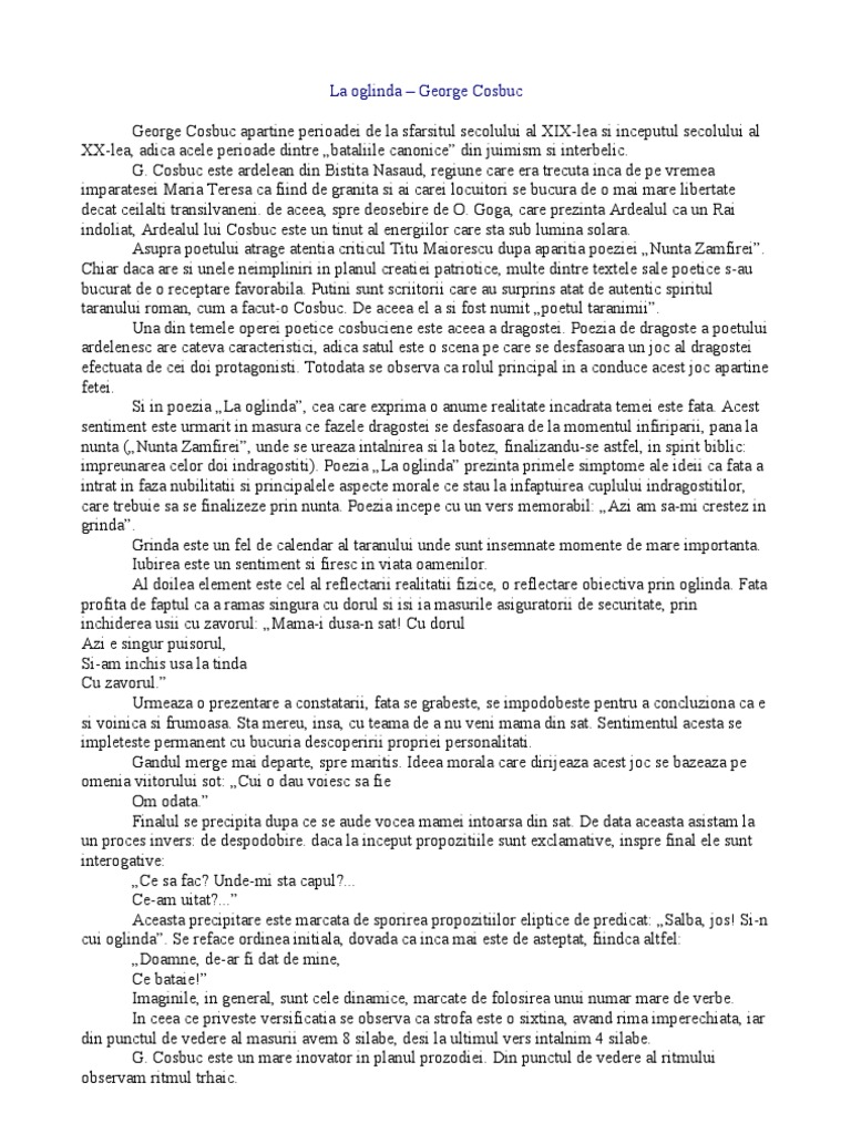 La Oglinda George Cosbuc Interpretata Si Ilustrata Cu Fotografii Al