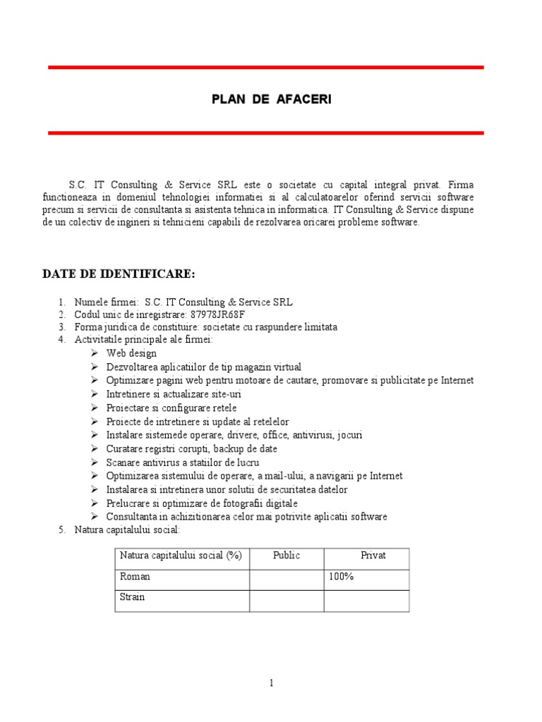 Proiect Plan De Afaceri Sc It Consulting Service Srl Economie 35884